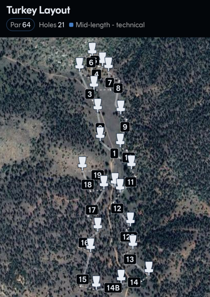 Layouts Updated September 2025!!! New novice layout “Turkey Layout” has been added! 21 hole layout (Par 64).